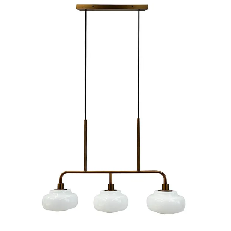 Langbordspendlen Ossett er tidløst design i moderne materialer og er med sit slanke udtryk et oplagt valg som . vil med de tre skærme i opalglas også give et godt lys over et køkkenbord eller en køkkenø, hvor den varme finish i bronze samtidig vil tilføje både moderne og traditionelle indretninger et eksklusivt og klassisk look.