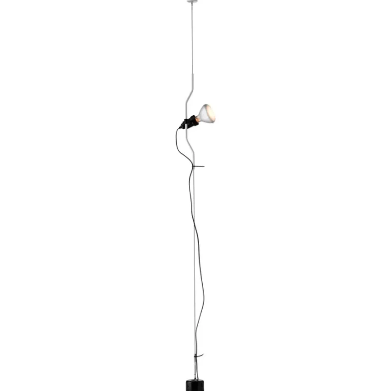 Parentesi er en unik gulv-til-, hvor selve lampen er monteret på et 4 m langt stålkabel.