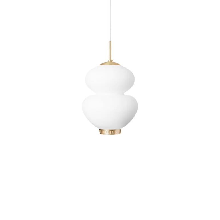 Den afdæmpede skærm formår at skabe et blødt udtryk i rummet, og kombineres flot med lampens runde former og jordnødde-form. Pendlen er tiltalende at se på, og giver en elegant og enkel fremtoning samt et varmt udtryk, grundet messingdetaljerne.