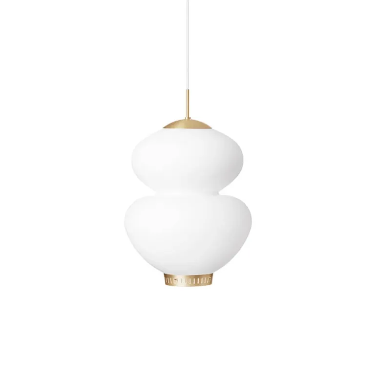 Den afdæmpede skærm formår at skabe et blødt udtryk i rummet, og kombineres flot med lampens runde former og jordnødde-form. Pendlen er tiltalende at se på, og giver en elegant og enkel fremtoning samt et varmt udtryk, grundet messingdetaljerne.