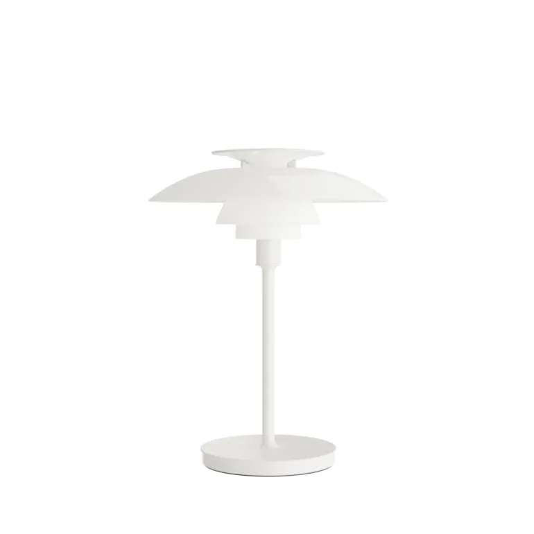 PH 80 Portable lanceret i 2025 er elegant nedskaleret fra det oprindelige design fra 1974 for at tilpasse den enestående lampe til nutidens indretninger. Den originale PH 80 blev skabt i året, hvor Poul Henningsen ville være fyldt 80 og er en raffinert hyldest til hans designarv. Det ikoniske treskærmssystem sikrer en fantastisk blændfri lysfordeling med både omgivende belysning og nedadrettet lys.