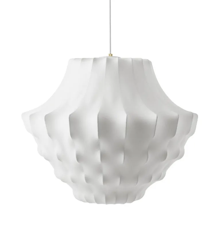 Lampen er fremstillet ved sprøjtning af tynde tråde af brandhæmmende resin på en stålramme. Mange lag af tråde fuldender lampeskærmen, præcis som en silkeorm laver sin kokon.