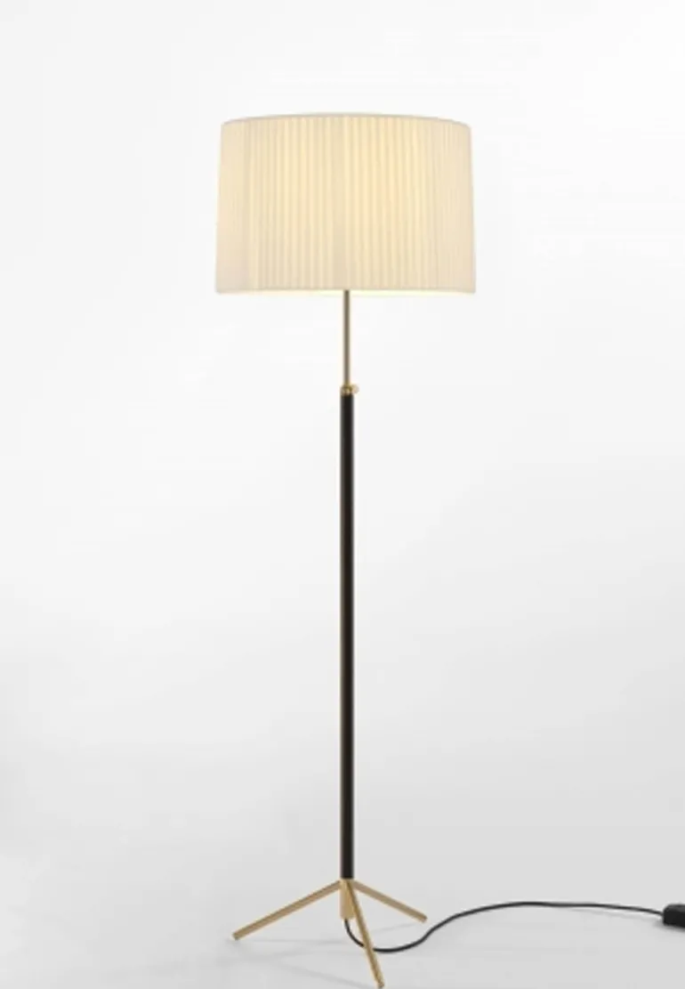 Pie de salón gulvlampen er lavet med fokus på at Jaume Sans kunne bruge dem i sin egen indretning. Justerbar lampe, med et sort læderdækket skaft som gør designet lidt mere luksuriøst. Pie de salón lampen findes i 3 forskellige modeller; G1, G2 og G3. 2 forskellige baser; Messing og krom, og er lavet i et hav af forskellige flotte skærm farver.