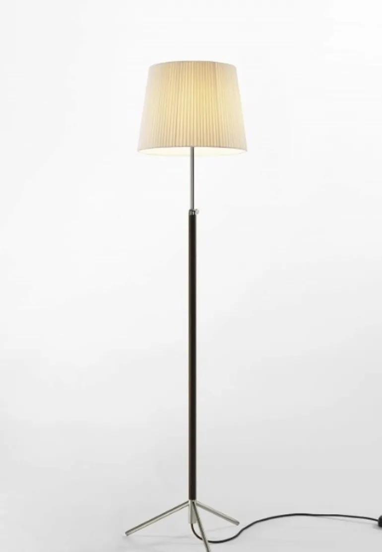 Pie de salón gulvlampen er lavet med fokus på at Jaume Sans kunne bruge dem i sin egen indretning. Justerbar lampe, med et sort læderdækket skaft som gør designet lidt mere luksuriøst. Pie de salón lampen findes i 3 forskellige modeller; G1, G2 og G3. 2 forskellige baser; Messing og krom, og er lavet i et hav af forskellige flotte skærm farver.