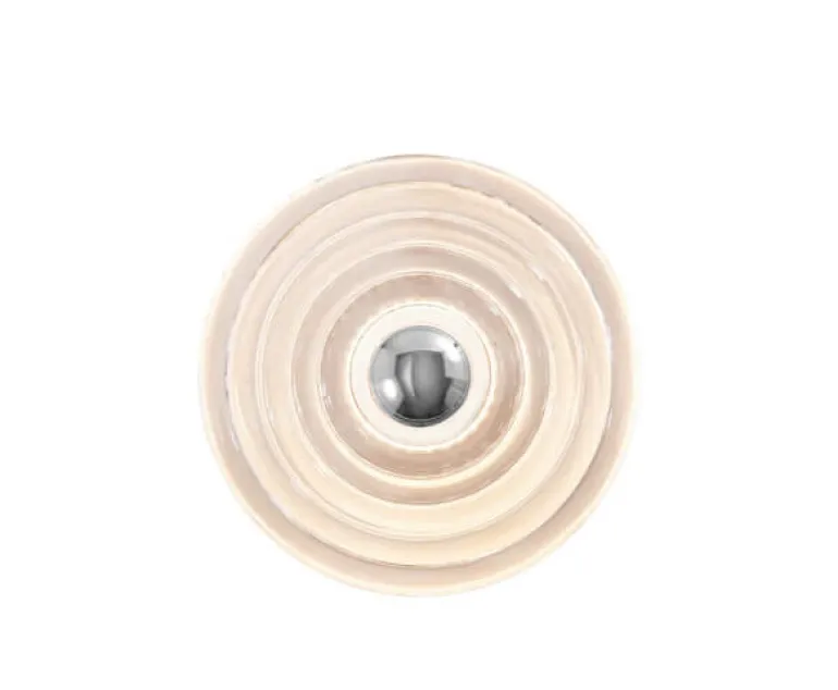 Press Surface mini er fremstillet i tykt presset glas og kan med lampens IP55-klassificering anvendes både indendørs og udendørs. Press er designet til at holde for evigt og bryder og spreder lyset i lineære og stribede mønstre med skærmens ribbede glas. Metalkuplen på Press kan skiftes, og der medfølger kupler i sølv, guld og sort.