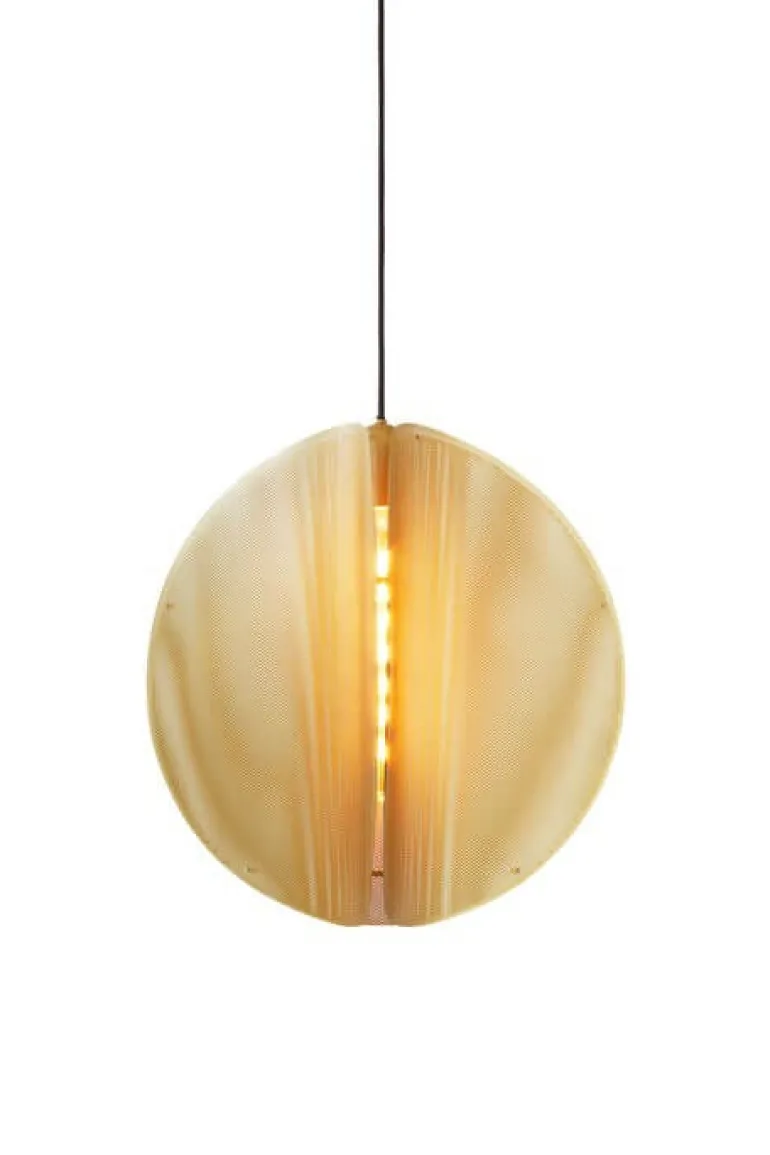 Proxima er inspireret af den fjerne glød fra vores nærmeste nabostjerne Proxima Centauri. Lampen er fremstillet i stål med finish i messing og hundredvis af små perforeringer, så lyset spredes blødt i alle retninger.