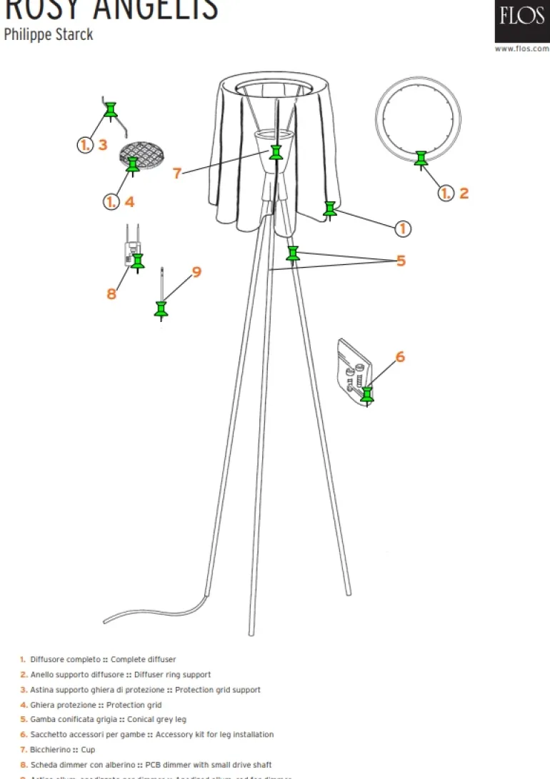 Rosy Angelis gulvlampe designet af Philippe Starck. Dette er en reservedel bestående af en inderskærm/reflektor til Rosy Angelis gulvlampen fra Flos. Det er nr. 7 på tegningen, der viser inderskærmen.