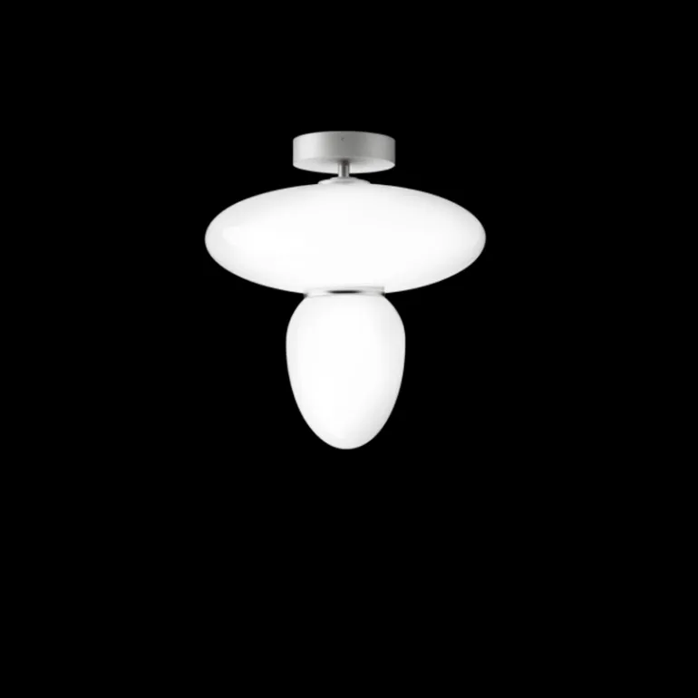 Lampen er af mundblæst opalt glas og sølvfarvet anodiseret aluminium. Rizzatto lampen giver et behageligt stemningsfyldt lys, der spredes smukt fra det opale glas.