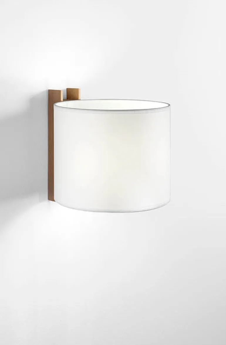 Lampens vægbeslag er af bøge- eller valnøddetræ, og skærmen er fremstillet af hvid eller beige pergament.