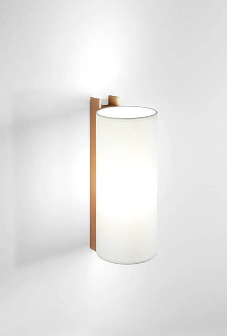 Lampens vægbeslag er af bøge- eller valnøddetræ, og skærmen er fremstillet af hvid eller beige pergament.