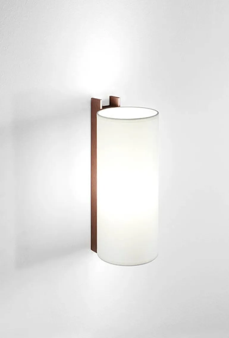 Lampens vægbeslag er af bøge- eller valnøddetræ, og skærmen er fremstillet af hvid eller beige pergament.