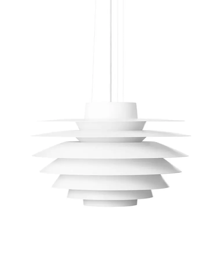 Verona består af 7 nedadgående skærme, der serverer en blød og blændfri belysning, hvilket er resultatet af mange års eksperimenter med forskellige konstruktioner. har sin egen ynde og enkelthed i rummet og oplyser smukt sig selv, når den er tændt.